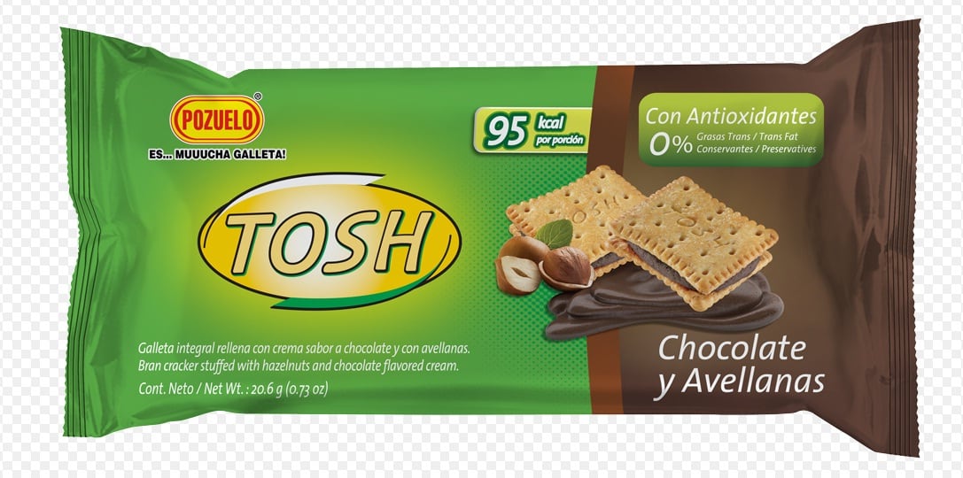 "La combinación de chocolates y avellanas resulta atractiva y es una opción que los consumidores deseaban encontrar en el mercado, con la ventaja de que estas nuevas galletas emplean en su fabricación cacao puro y avellanas, además de nutrientes adicionados al producto que incluyen: vitaminas A, C, B1, B2, B3, ácido fólico; y minerales como, Zinc y Selenio", según dijo Priscilla Montoya, jefa de la marca Tosh.