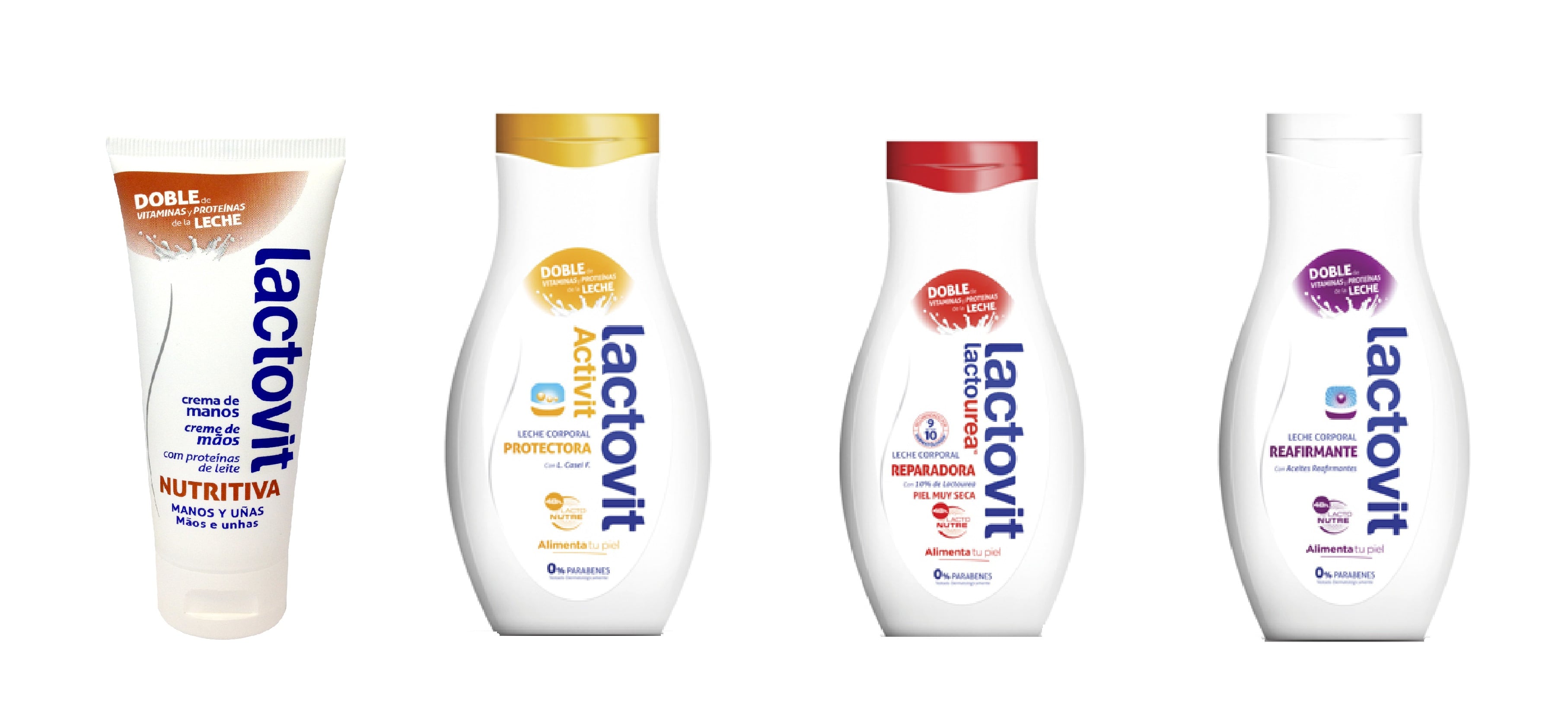 Para las pieles secas y sensibles, la marca ofrece la línea Lactovit Lactourea. Esta contiene una combinación de Urea pura y Ácido Láctico, la cual se encarga de mantener los niveles de hidratación necesarios.