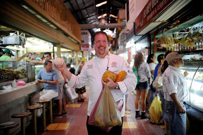 Los colores y los sabores de las frutas y vegetales costarricenses lo enamoraron. "Este lugar es un tesoro. Es asombroso", dijo el cocinero mientras probaba mangos y piñas, entre otros productos.