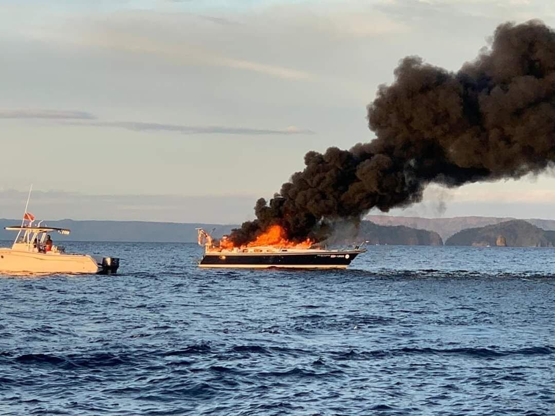 “Nuestras embarcaciones de Guardacostas, principalmente un bote interceptor de Guardacostas destinado en la estación de Flamingo trata de combatir un poco el incendio, aunque es muchísimo el fuego que tiene. Al ser de fibra de vidrio es muy difícil apagarlo. Es muchísimo el fuego que tiene. Guardacostas respondió en menos de 12 minutos, al igual que los compañeros de Fuerza Pública y Vigilancia Aérea, por si la situación se complicaba más”, agregó Arias.
