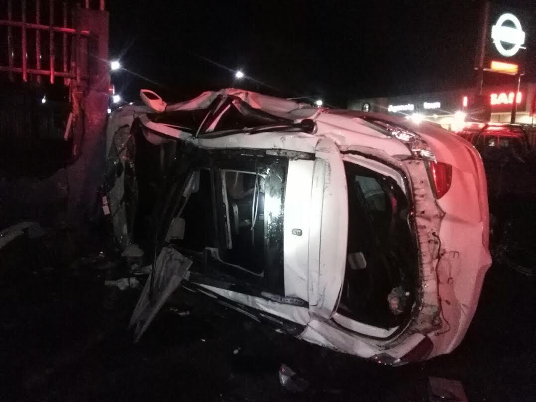 El carro dio varias vueltas y quedó volcado en la acera, sobre su costado izquierdo.