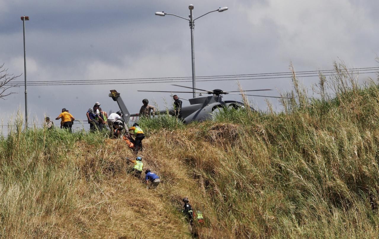 La aeronave quedó a unos 100 metros del borde del precipicio desde el punto que usaron los cuerpos de rescate para extraer los pacientes, detrás del cementerio de La Valencia, Ulloa de Heredia.