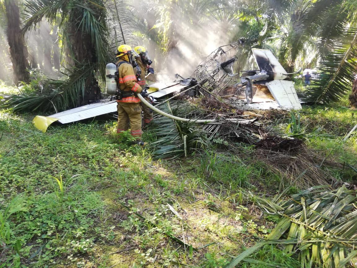La aeronave, matrícula TI-AWQ, pegó contra una planta de palma africana y se incendió. No obstante, el aviador Julio Antonio Morera Vargas, de 62 años, logró salir por sus propios medios, dijeron personas que se acercaron al sitio del percance.