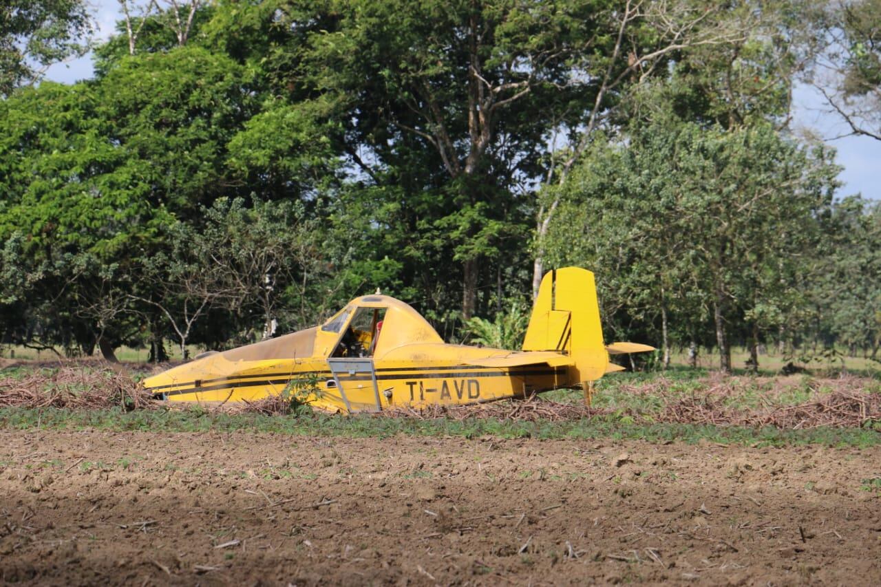 Sin embargo, cuando la fumigadora tocó tierra en el yucal, el aparato no rodó sino que se detuvo de forma brusca en la tierra. Debido al impacto el piloto sufrió golpes severos en las piernas por lo que debió ser llevado a la Clínica de Puerto Viejo para una valoración médica.