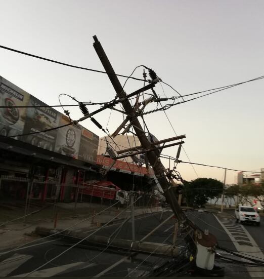 El bloqueo de la vías y la caída de postes se dio luego de que un camión de gran tamaño topara con parte del cableado generando un efecto dominó en la caída del tendido eléctrico. El accidente se reportó a eso de la 1 a. m. de este sábado.