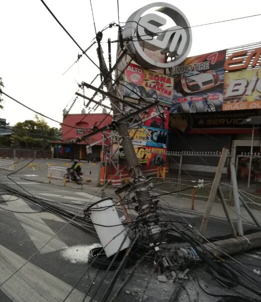 La CNFL publicó en sus redes sociales que en total fueron cinco los postes derribados en la zona.
