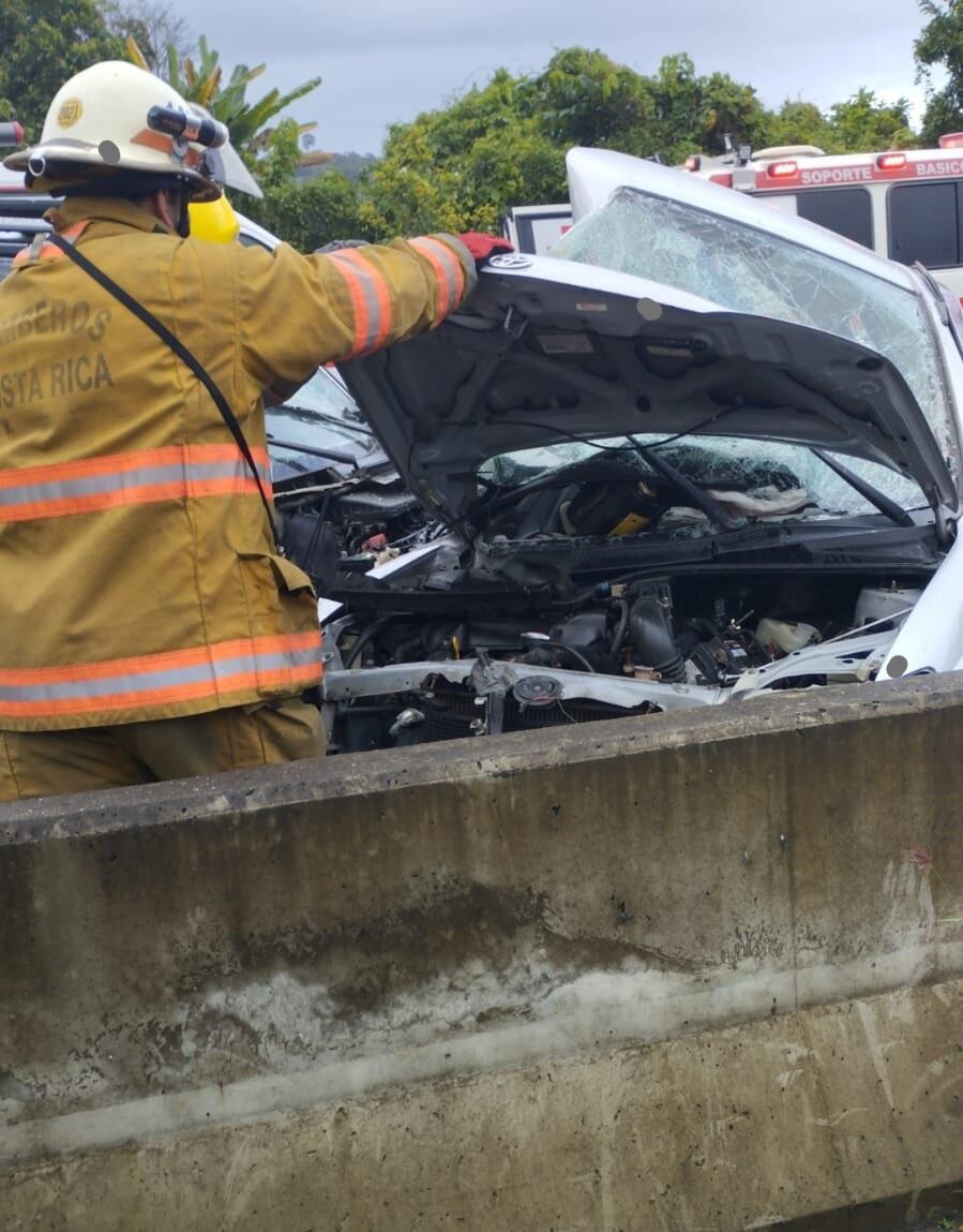 La Cruz Roja reportó que el hecho fue registrado al ser las 6:50 a. m. Al llegar al sitio, los socorristas encontraron a un hombre de entre 35 a 40 años sin vida, prensado entre las latas de uno de los vehículos. Una segunda pasajera del mismo auto, de 35 años, fue trasladada en estado crítico al Hospital de Guápiles.