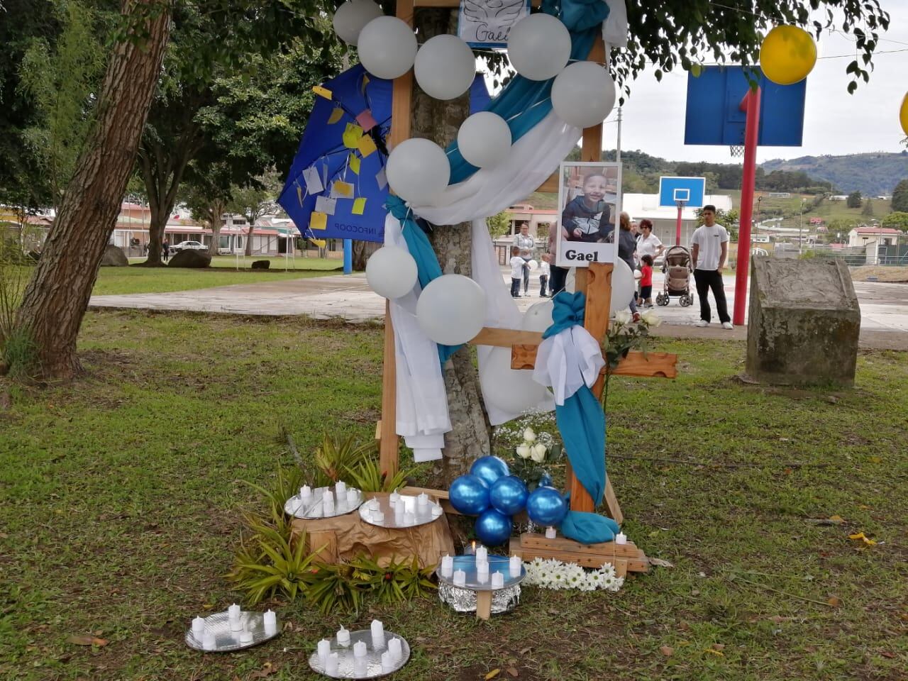 El pequeño de cuatro años, identificado como Ángel Gael, quien falleció el jueves luego de que un enorme árbol le cayera a él y a su mamá, fue honrado este viernes con mucho amor, lágrimas y solidaridad por parte de familiares y vecinos que se reunieron en el parque Los Sauces, unos 300 metros al este de la basílica de El Tejar, El Guarco, en Cartago, donde ocurrió el incidente.