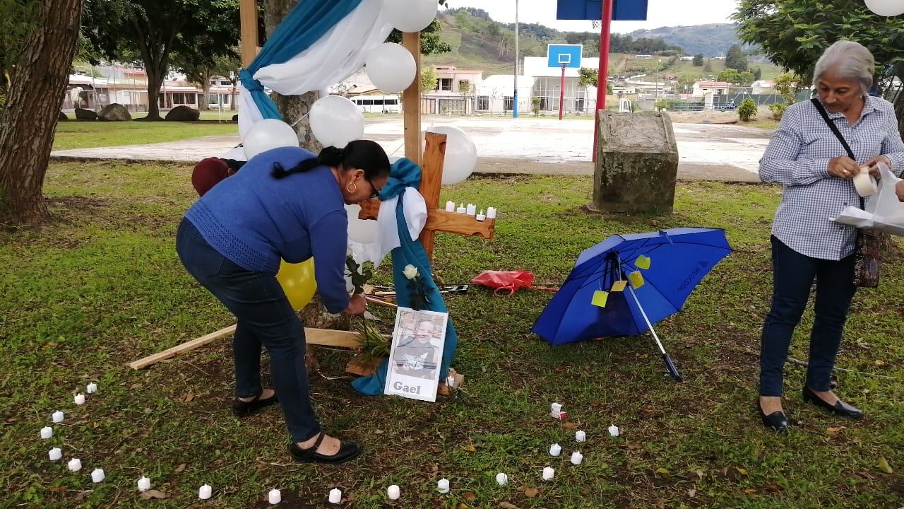 “Tantas veces he traído a mis hijos a jugar a este lugar y que ocurra algo de esta magnitud, como papás, sentimos mucho temor. Mientras aquí no corten estos árboles no pienso volver a traer a mis hijos de 2 y 5 años a exponerlos a una tragedia como esta. No deseo ni pensar en lo que debe de estar pasando la mamá porque de imaginarme siento un dolor en el pecho”, dijo Ana María Monge, quien asistió al homenaje con sus hijos.