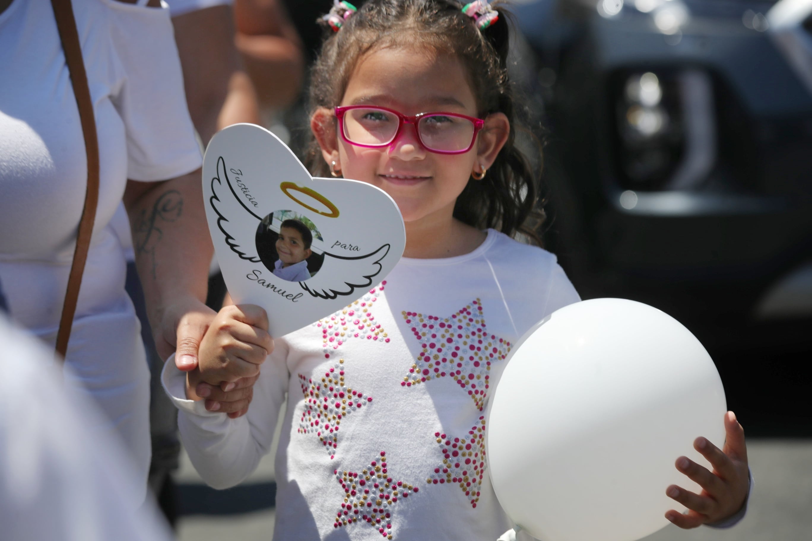 La ceremonia inició a eso de las 10: 30 a. m., donde familiares, personas cercanas, compañeritos y amigos de Samuel estuvieron dándole el último adiós al pequeño en medio de lágrimas, solidaridad y muchos globos blancos. A los presentes se les pidió acudir de blanco para despedir a un inocente, víctima de la balacera perpetrada, el lunes en la madrugada, por grupos narco que se disputan territorios en barrio La Gloria.