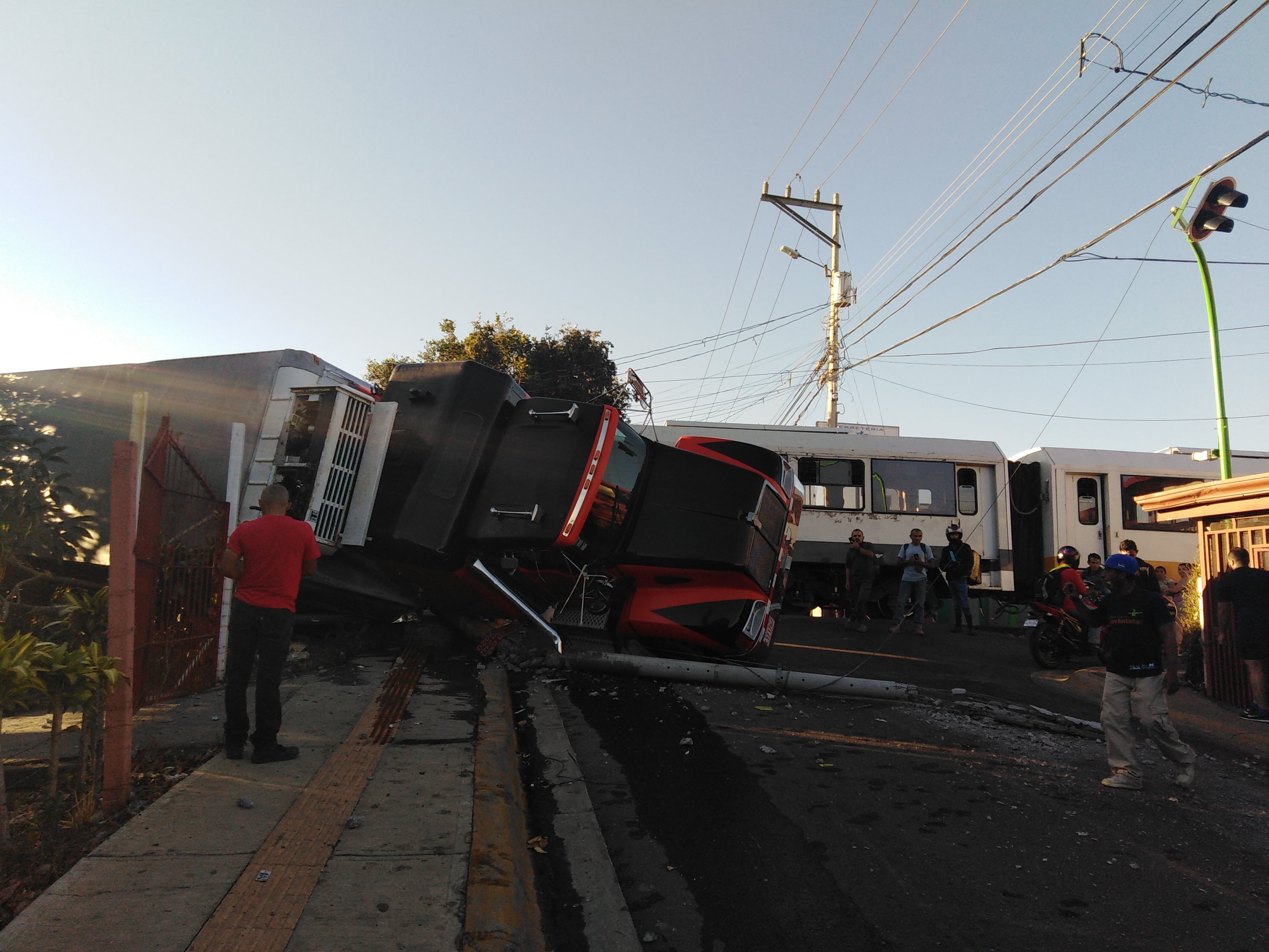 De acuerdo con las autoridades, el ferrocarril se dirigía hacia Heredia cuando fue colisionado por el vehículo pesado, el cual transportaba pollo congelado.
