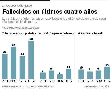 Un total de 26 personas falleció entre el 24 de diciembre del 2014 y el 1.° de enero de este año, según reportes de la Cruz Roja.