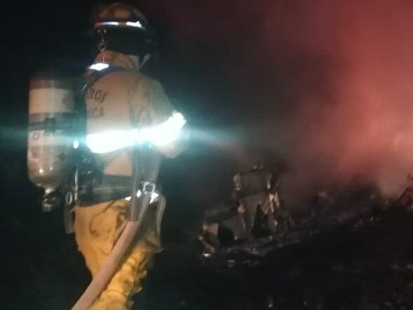 Cuando unidades de la Cruz Roja, Bomberos y Fuerza Pública llegaron al sitio, en una finca de la empresa Panamerican Woods, encontraron la nave envuelta en llamas.