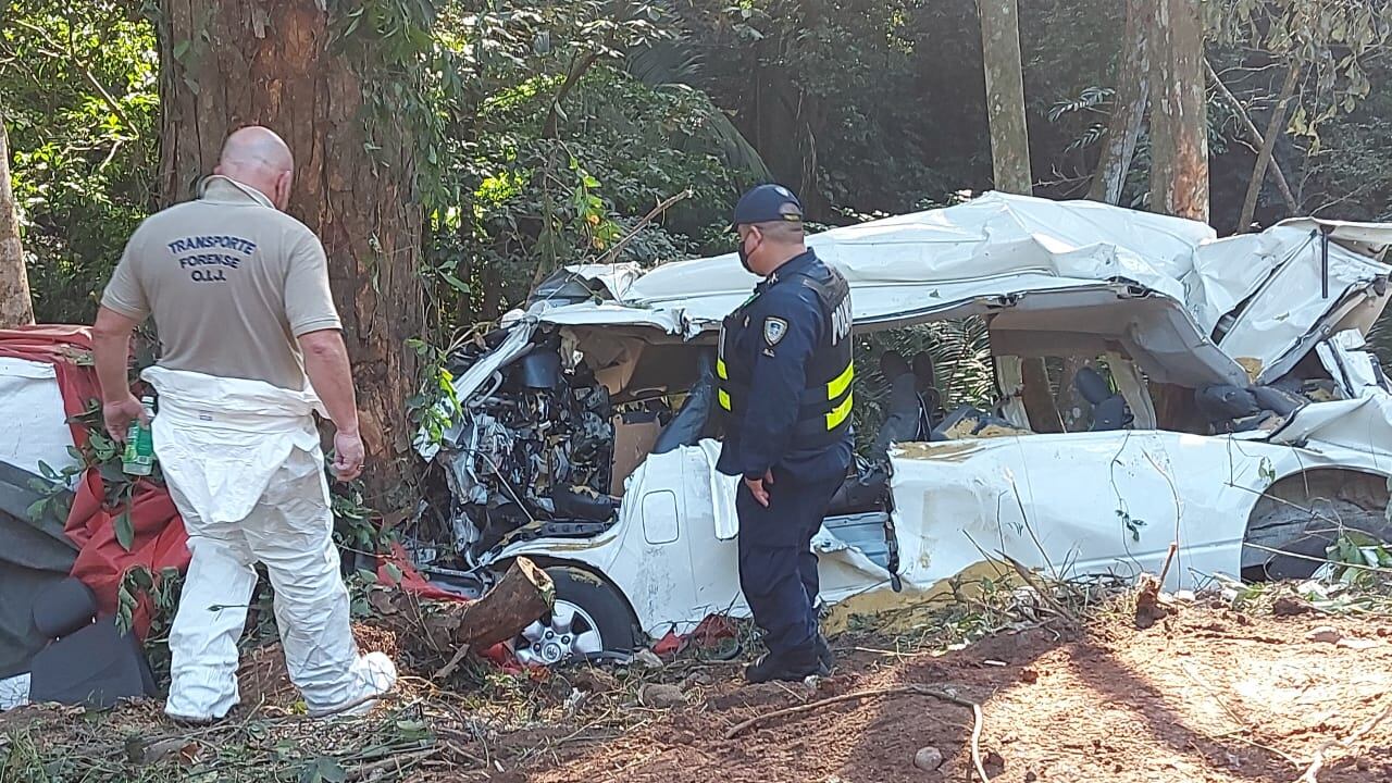 Los fallecidos son dos mujeres estadounidense, un hombre suizo y el conductor del microbús, de nacionalidad costarricense. Además, una extranjera permanece internada en el Hospital Monseñor Sanabria en condición delicada y el chofer del camión pesado fue atendido en el sitio por los golpes que sufrió.