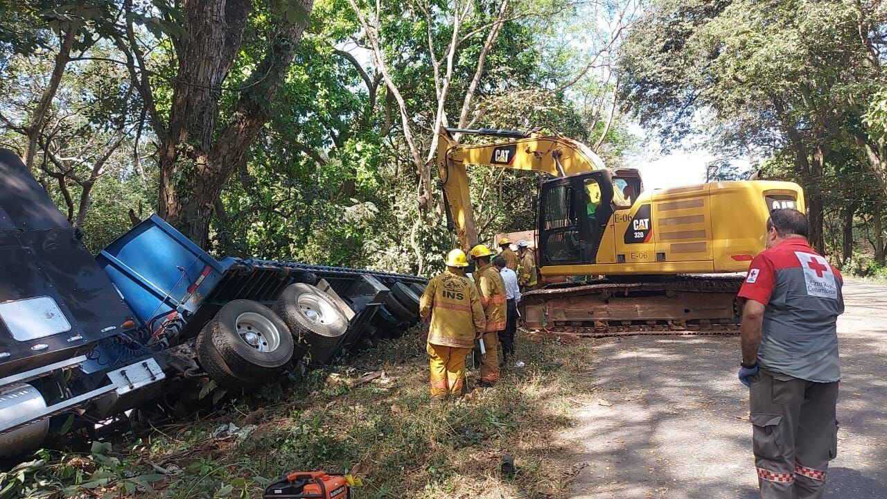 Jorge Matamoros, coordinador Operativo Regional de la Cruz Roja, precisó que la escena fue muy compleja, ya que el tráiler llevaba pacas de azúcar y estaba sobre la buseta, que estuvo era sostenida por árboles, de lo contrario, precisó, hubiese caído a unos 25 metros de profundidad.