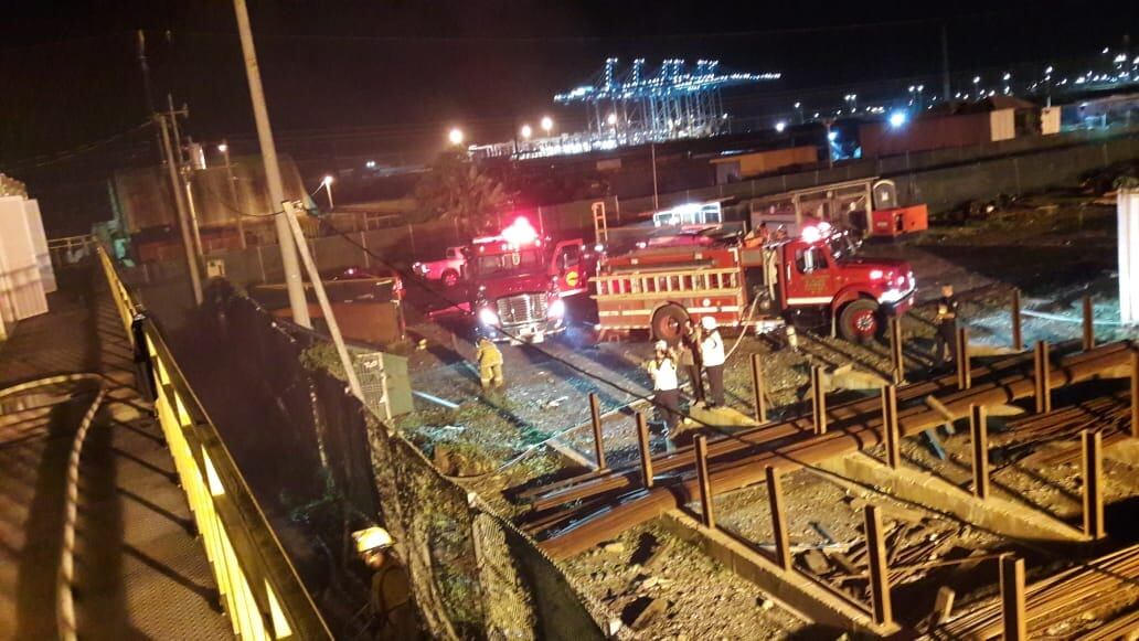 Minutos antes de este incendio los Bomberos de Limón atendieron otro en la terminal de APM Terminals en Moín, Limón cuya alerta recibieron a las 9:07 p. m.