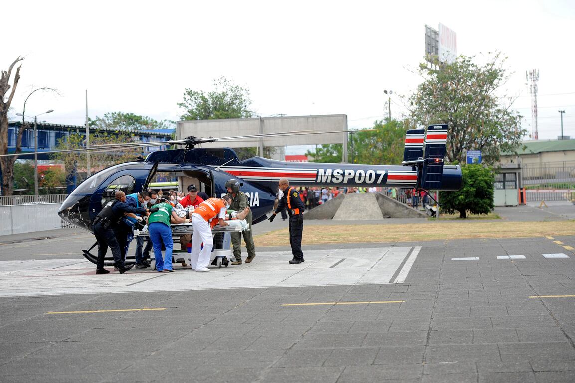 Campos presentaba fracturas expuestas y golpes varios en diferentes partes del cuerpo por lo que fue trasladado por la unidad de la Cruz Roja a la Plaza de San Mateo donde sería remitido al Hospital México en un helicóptero de la sección aérea de la Fuerza Pública.