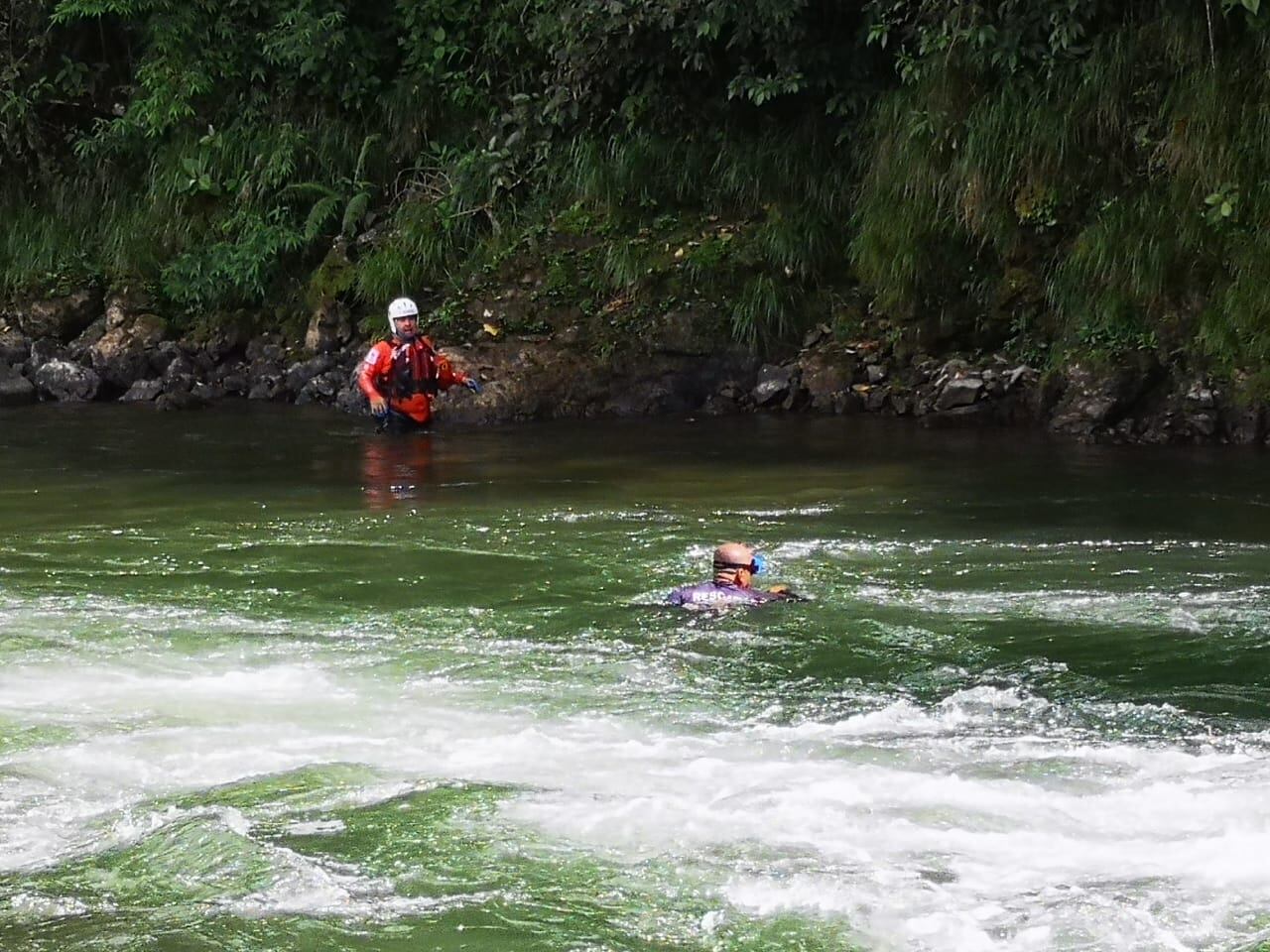 Por ello, desde el jueves, un grupo de 15 cruzrojistas, tres kayakistas locales, policías de Fuerza Pública, 1 unidad de montaña de San José y dos ambulancias participaron en las labores de búsqueda.