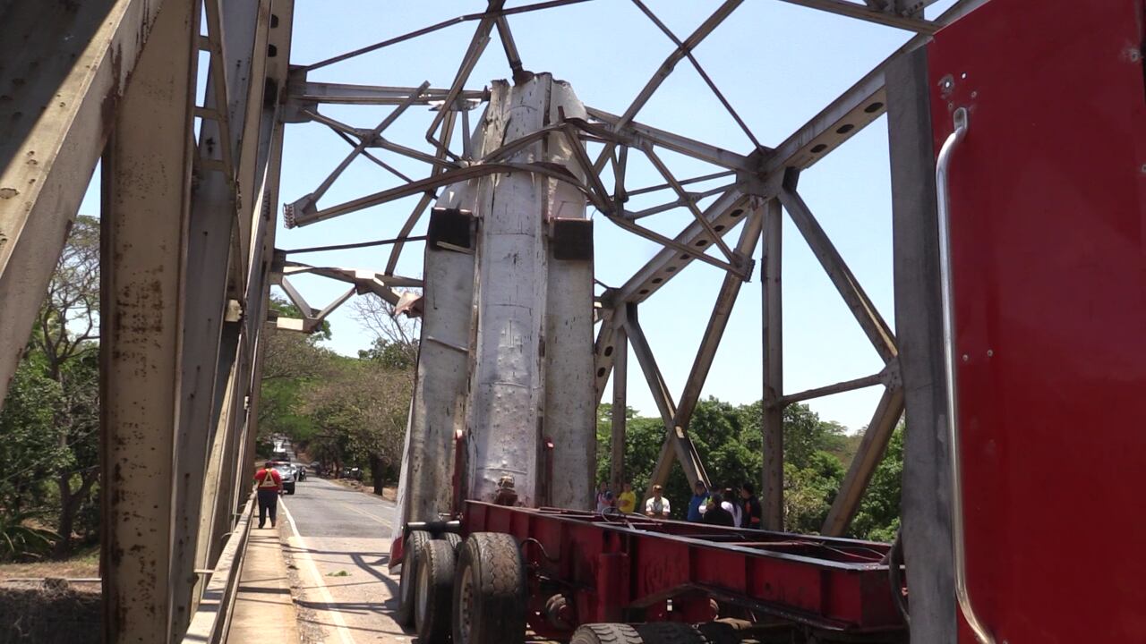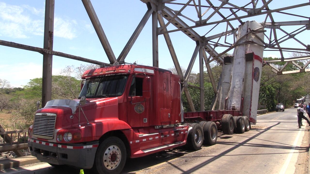 El cabezal ingresó al puente en el sentido Puntarenas - Guanacaste y avanzó unos 8 metros hasta que la góndola se incrustó. Aunque el chofer no sufrió ningún golpe, si tuvo que buscar algún lugar para quitarse la gran cantidad de aceite hidráulico que le cayó encima, cuando se acercó a ver el problema en el vehículo.