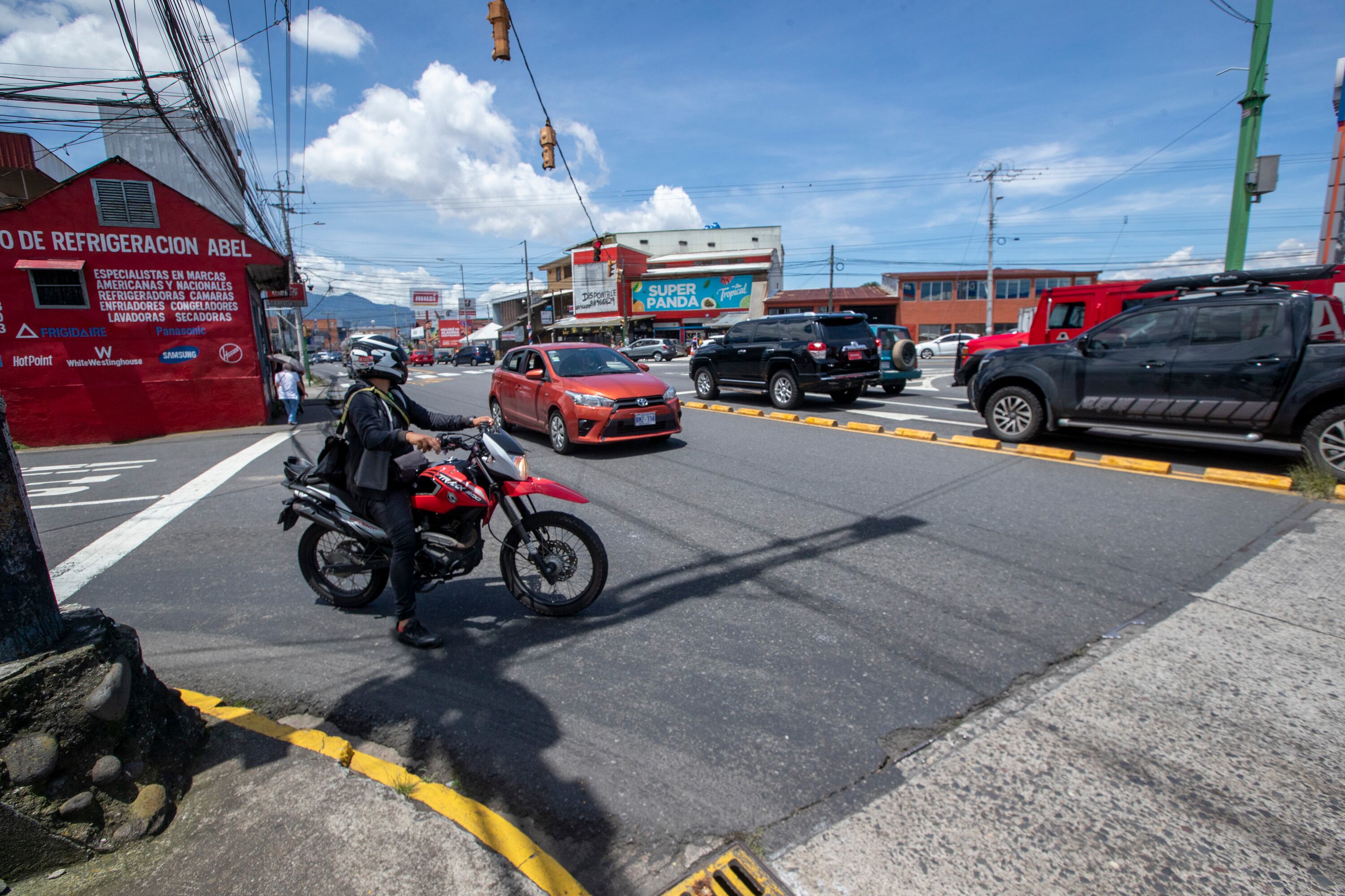 Viernes 16 de setiembre, 11 a. m. en la carretera 218, que atraviesa Goicoechea, hacia Coronado. Un ciclista, apenas con un casco, intenta salir de la Municipalidad de Goicoechea, cruzar los dos carriles que bajan hacia San José y enrumbarse al noreste. La maniobra es peligrosa, pues no hay un semáforo que le permita cruzar, así que se arriesga entre los vehículos que circulan a alta velocidad y la poca visibilidad que tiene frente a camiones y autobuses.