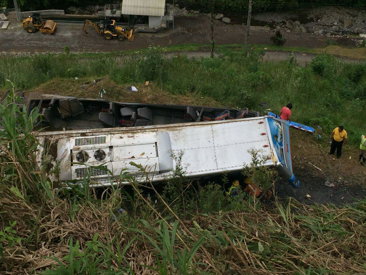 Sin embargo, a las 9 a. m. el viaje se detuvo trágicamente, luego de que el autobús en el que viajaban se saliera de la vía y cayera a un guindo de 27 metros. El accidente se presentó en un descenso y, tras dar varias vueltas quedó en la entrada a la planta hidroeléctrica El Ángel. En el lugar murieron 11 personas, mientras que las cuatro víctimas restantes fallecieron en los hospitales San Carlos, San Vicente de Paúl, en Heredia, y México, donde se presentaron dos decesos.