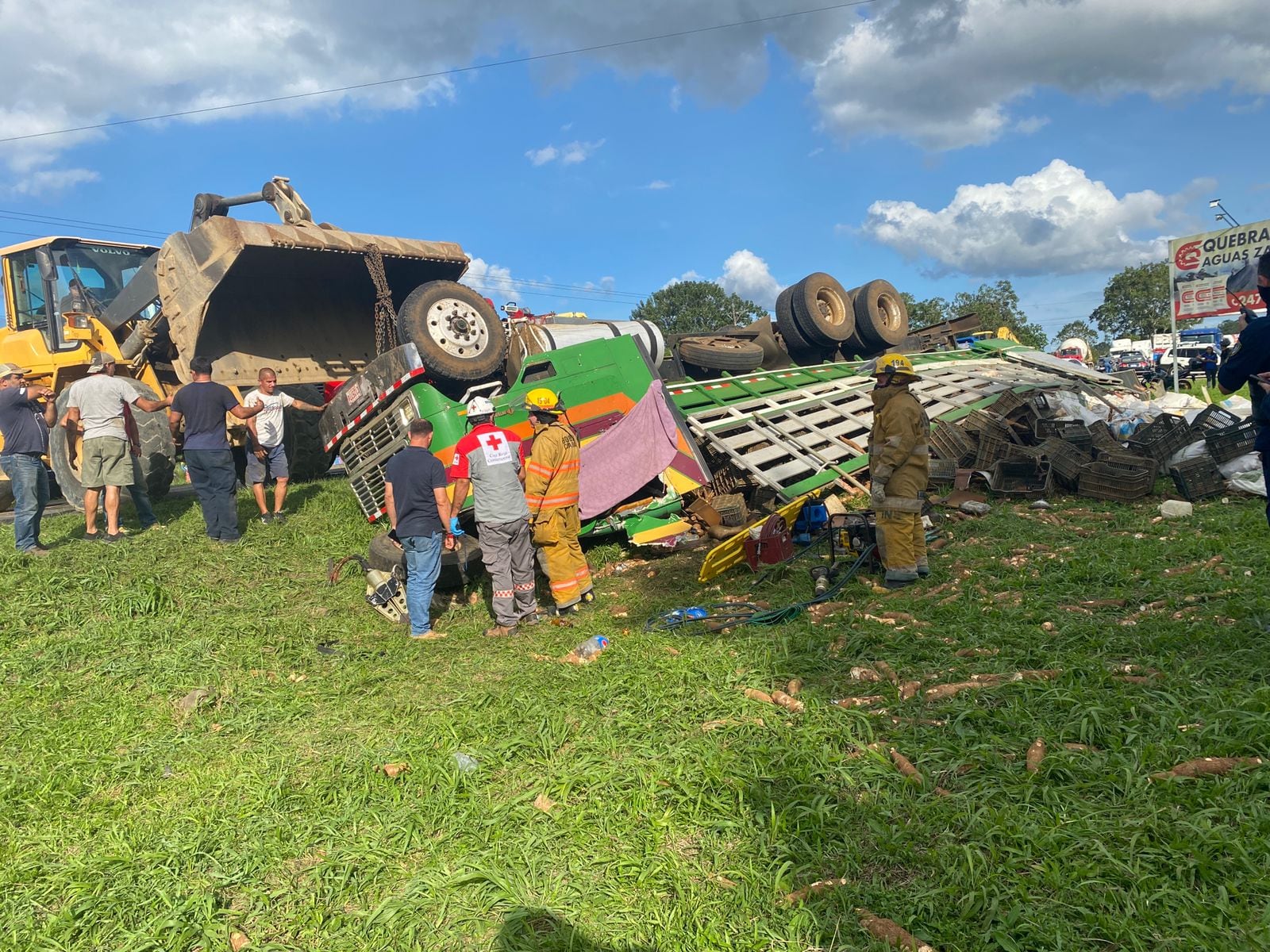 Inicialmente, las autoridades informaron de que la carga fue la que generó el vuelco del camión.