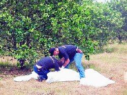 Alegaron que los recipientes son indispensables porque si no recogen las naranjas no reciben salario. Por cada tina llena con 1.200 naranjas les pagan ¢1.000.