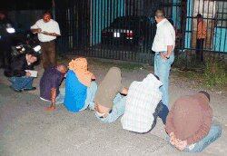San José. Agentes del OIJ y de la Fuerza Pública detuvieron a cinco hombres que conformaban una banda que se dedicaba desde hace varios meses a robar autos mediante bajonazos. Los sujetos eran vigilados desde hace un mes. El arresto se produjo en Calle Fallas, Desamparados, a las 7:40 p. m. del martes. Los sospechosos estaba a bordo de un carro sin placas.