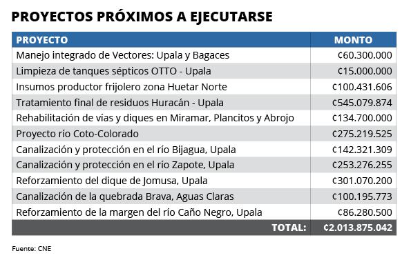 Para soluciones de vivienda se necesitan ¢3.400 millones, para el sector agrícola ¢6.000 millones, en acueductos ¢4.545 millones y en ambiente otros ¢1.600 millones.