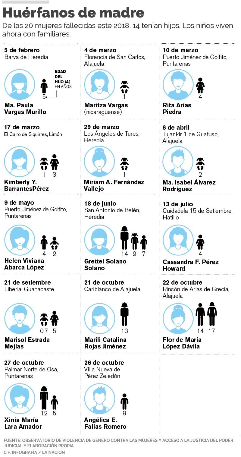 Cambiar de casa de un momento a otro, adaptarse a un nuevo núcleo familiar e intentar asimilar la muerte de su madre son algunos de los retos que 21 menores de edad han debido afrontar durante este año debido a que son hijos de 14 de las 20 mujeres asesinadas por sus parejas sentimentales en los últimos 10 meses.