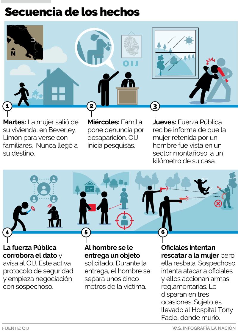 “Se llega un acuerdo y se le entrega un objeto que él había requerido a las autoridades. Durante el intercambio, el sospechoso se separa unos cinco metros y en ese momento dos agentes intentan sacar a la mujer”, explicó el director del OIJ, Wálter Espinoza.