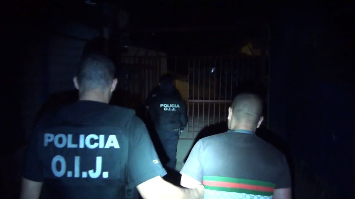 En el allanamiento a tres casas, en Dos Cercas y San Juan de Dios de Desamparados, fueron detenidos tres hombres de apellidos Jiménez Mairena, Morales Valverde y Porras Camacho, y una mujer de apellidos Medina Brenes.