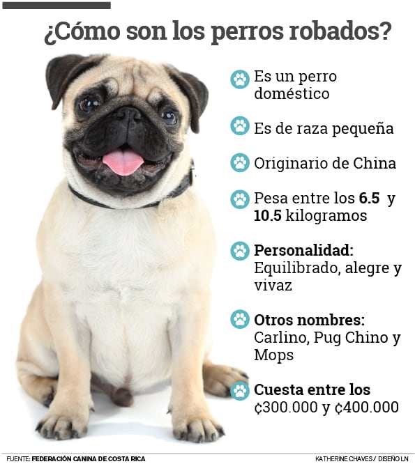 Un hombre publicó en una página de Internet que vendía dos perros de raza pug. Cada uno, indicó en la oferta, costaba ¢300.000.