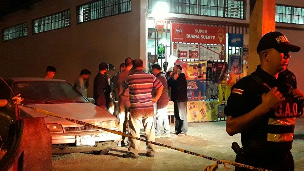 La Fuerza Pública informó de que el hecho ocurrió a las 8:40 p. m. del martes dentro del súper Buena Suerte, el cual se ubica 200 metros al este de la iglesia católica de Tejar de El Guarco.