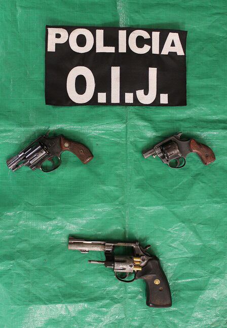 Durante el operativo del OIJ, a los asaltantes les decomisaron dos celulares y tres revólveres cortos.