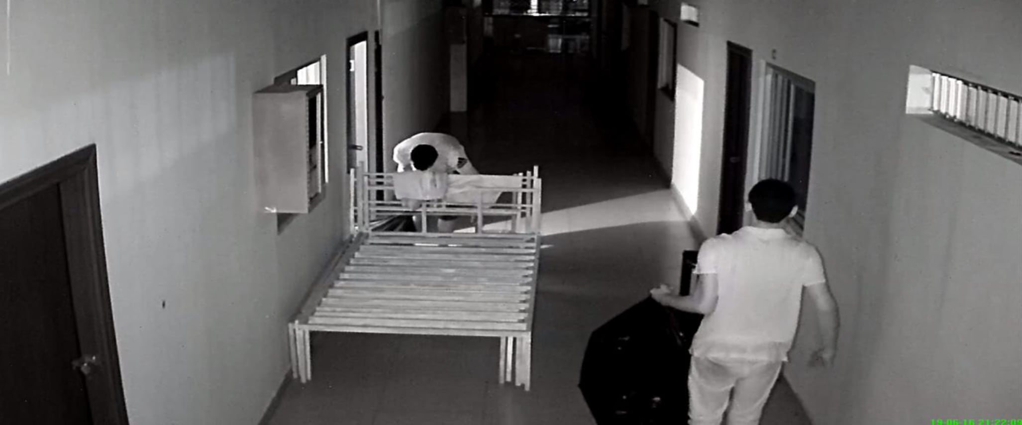 Al caer la noche, cerca de las 9 p. m., ambos varones quedan grabados cuando salen de sus habitaciones cargando dos pesadas bolsas negras.
