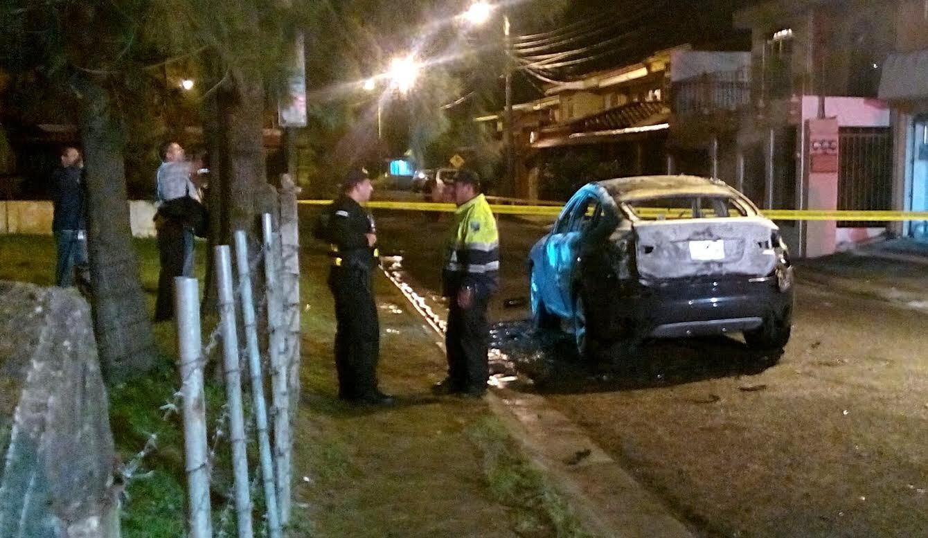 Un hombre, aún sin identificar, apareció muerto dentro de un vehículo que ardió en llamas en Villas de Ayarco, Curridabat, específicamente, a un costado de la farmacia Sucre.
