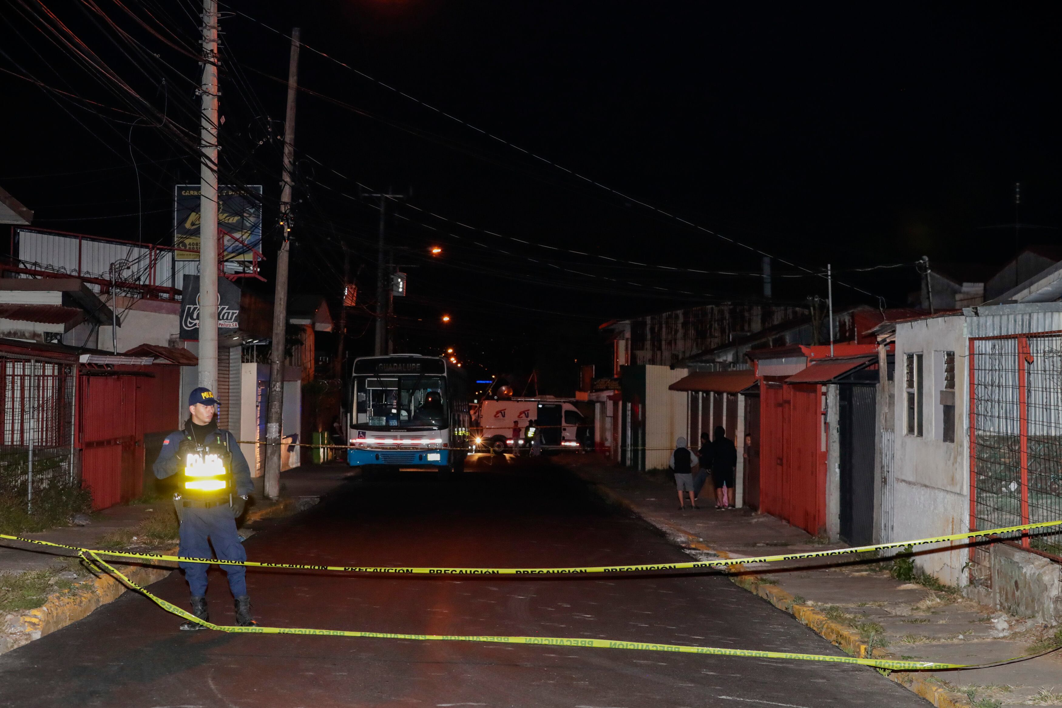 Oficiales de la Fuerza Pública custodiaron la escena en espera de la llegada de los agentes de Homicidios del Organismo de Investigación Judicial (OIJ), quienes a las 10 p.m. iban a iniciar con las pesquisas.