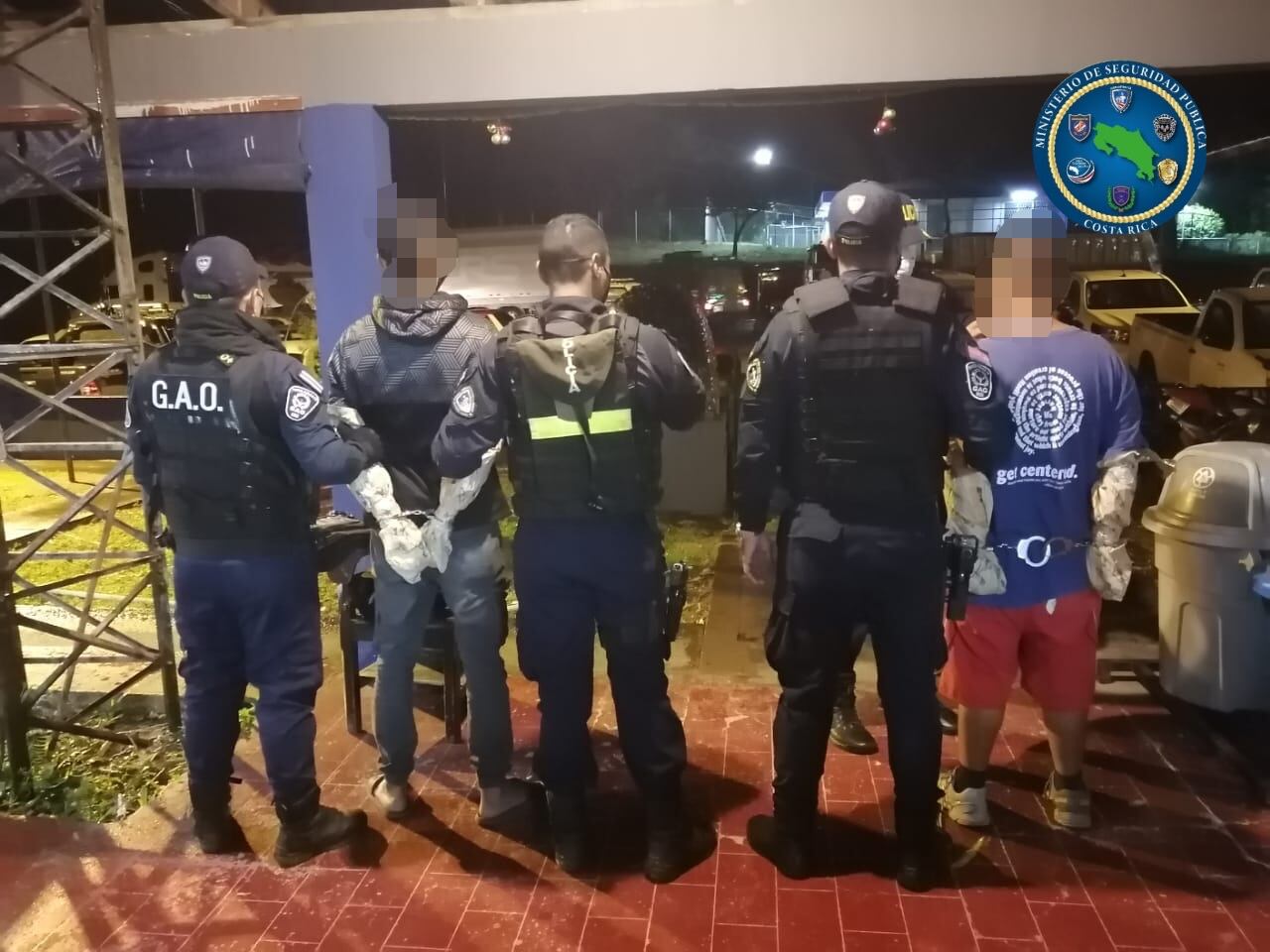 Tras verificar los datos, se confirmó que la moto tenía denuncia por robo y se detuvo a dos sujetos, de apellidos Quesada Vega (41 años) y Mejía López (23). El director de la Fuerza Pública en la región Chorotega Norte, Rodrigo Alfaro, indicó que ambos sujetos cuentan con un “amplio expediente delictivo” y quedaron a las órdenes del OIJ.