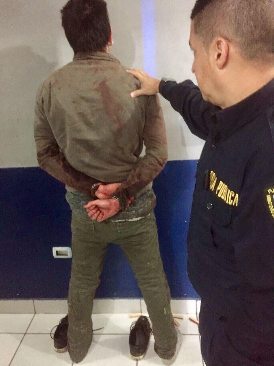 Al ser abordado por los policías, el joven no puso resistencia. Su vestimenta estaba ensangrentada y dentro del carro fueron encontrados dos cuchillos.