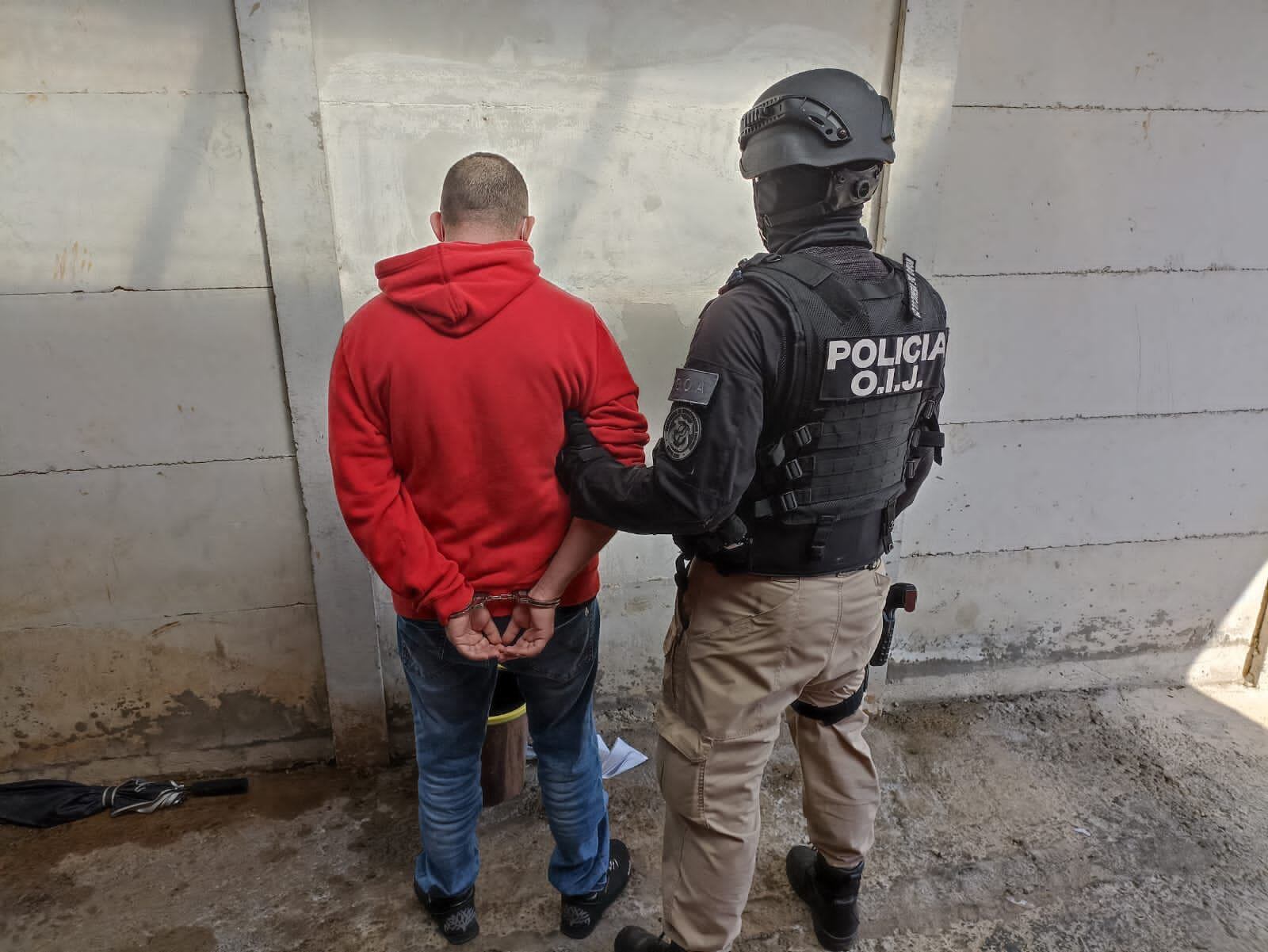 El supuesto cabecilla, de apellidos Gatgens Chacón y de 30 años, desde enero cumple prisión preventiva por homicidio en la cárcel Terrazas, en el complejo La Reforma, en San Rafael, Alajuela. Como parte del operativo, el sujeto fue trasladado este martes a la Fiscalía para la apertura de un nuevo expediente.
