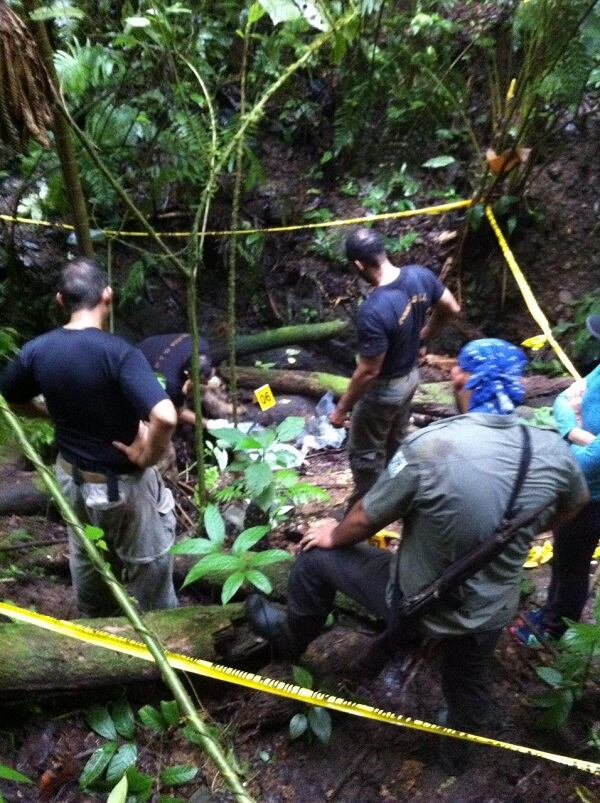 Ávila explicó que tanto los restos óseos así como las otras pertenencias se encontraban en la montaña a lo largo de 75 metros de un riachuelo llamado Quebrada Doctor, cerca del cerro Negrito, unas tres horas a pie de la comunidad de Dos Brazos del Río Tigre, en Puerto Jiménez de Golfito.