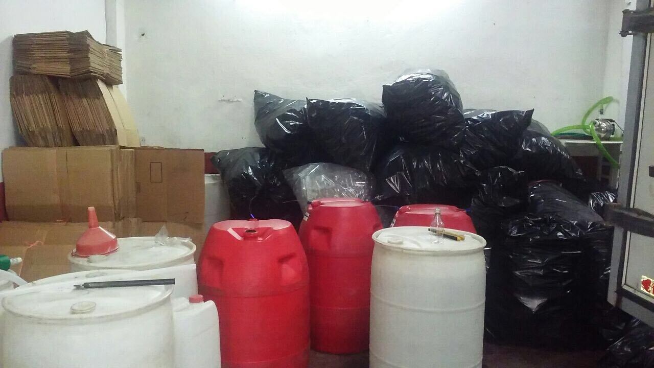 La PCF también allanó una bodega en el Alto de Guadalupe donde se fabricaban las sustancias adulteradas; entre los hallazgos están estañones de etanol, indumentaria para su preparación y producto terminado.