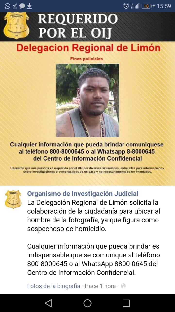 Empero, se cuenta con los datos que Rivas suministró cuando se registró en las cabinas y además es conocido de varios testigos, por lo que su foto ya circula en Limón, a fin de aprehenderlo cuanto antes. Es vecino de barrio Limoncito.