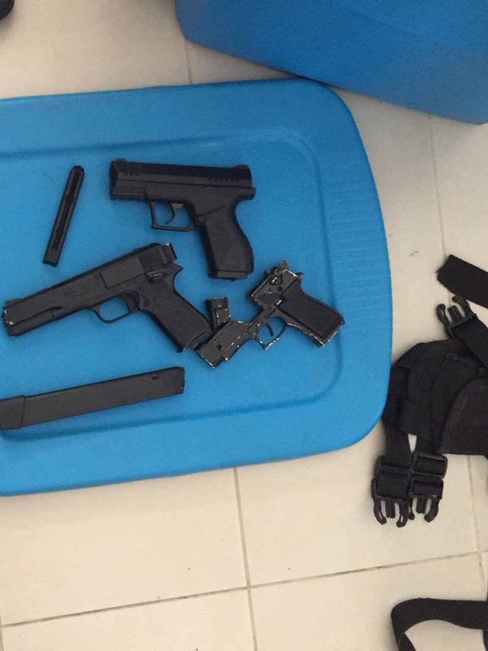 En ellas se decomisaron teléfonos celulares, armas de fuego reales y falsas, indumentaria de la Policía, chalecos antibalas y un vehículo.