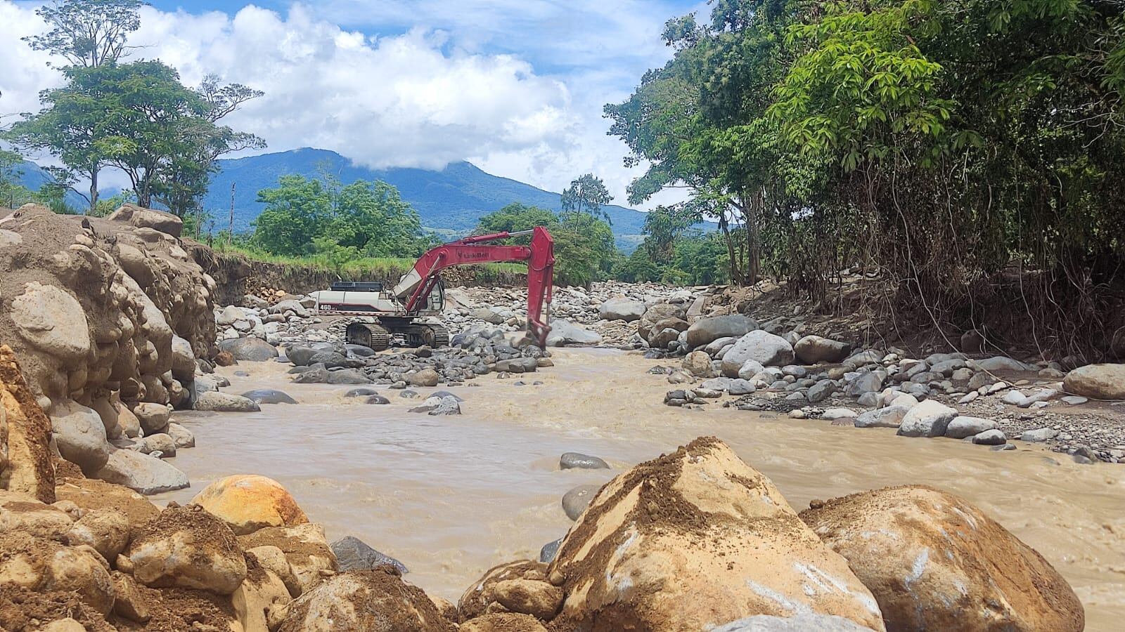 Además, se empleó maquinaria de alto tonelaje para contener la cantidad de material que desciende por el río.