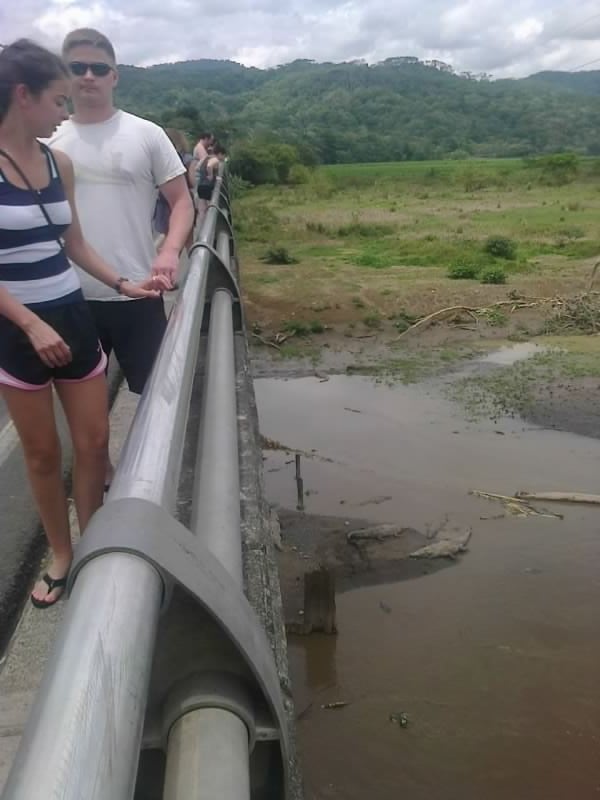 Hoy miércoles socorristas, oficiales de la Fuerza Pública y particulares rastrearon los ocho kilómetros que hay desde el puente en la carretera Costanera hasta la desembocadura del río en Playa Azul en busca de restos, pero no lograron encontrar nada.