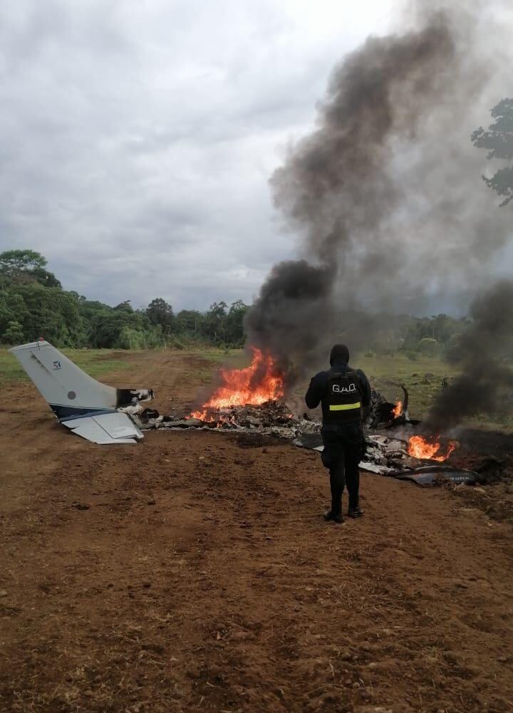 Aparentemente, la Policía de Control de Drogas (PCD) se hizo presente en el sitio con el fin de descartar residuos de algún estupefaciente incinerado en la aeronave.