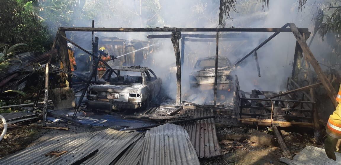Dos máquinas extintoras y un vehículo de apoyo de Batán y Siquirres atendieron la escena y a las 7:33 a. m. controlaron el fuego, pero la casa de 45 metros cuadrados, así como los vehículos quedaron con pérdida total.