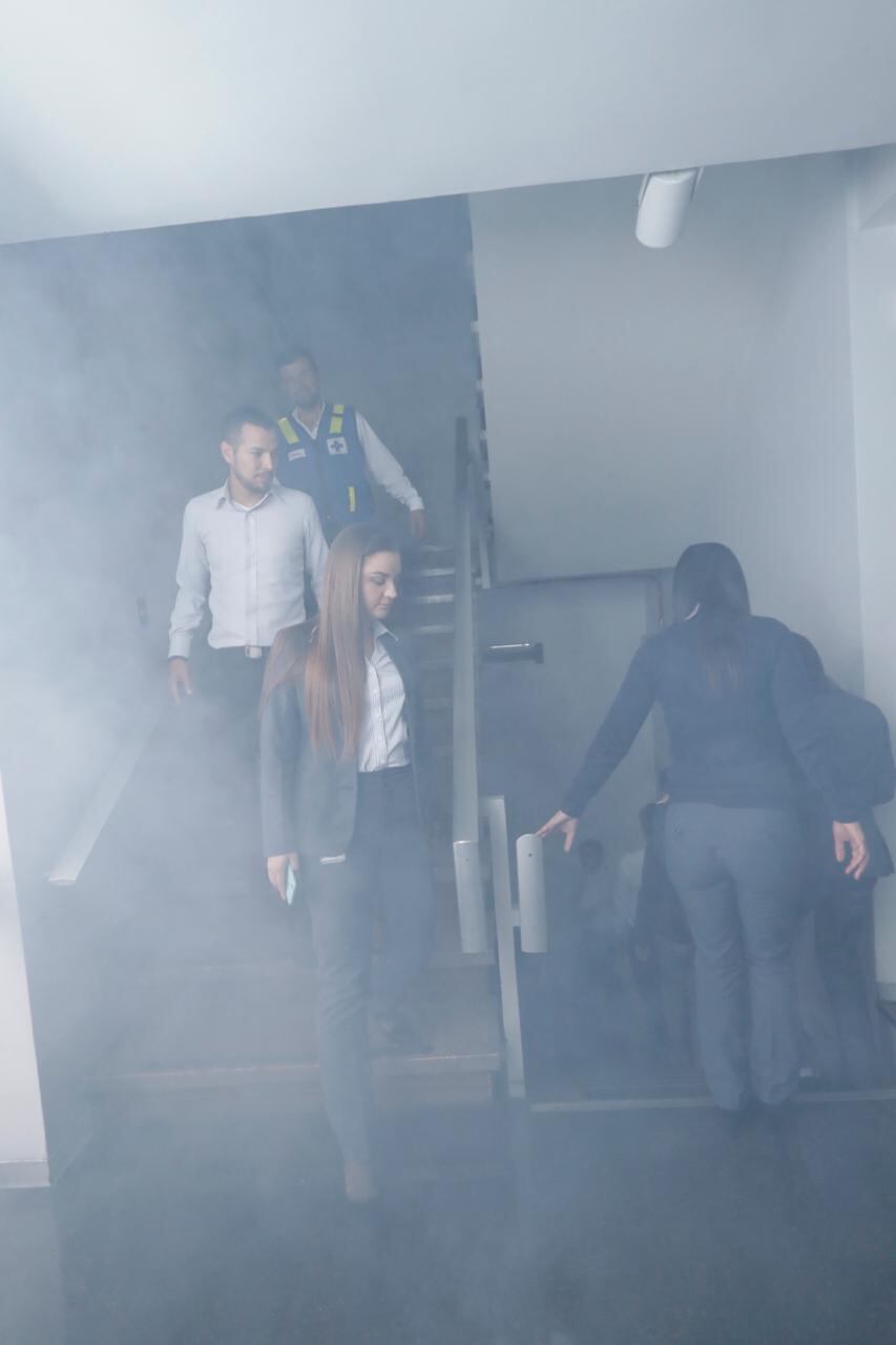 Simulacro CR: Evacuación del Banco Nacional en San José centro, donde además del terremoto se simula un incendio en el piso 13